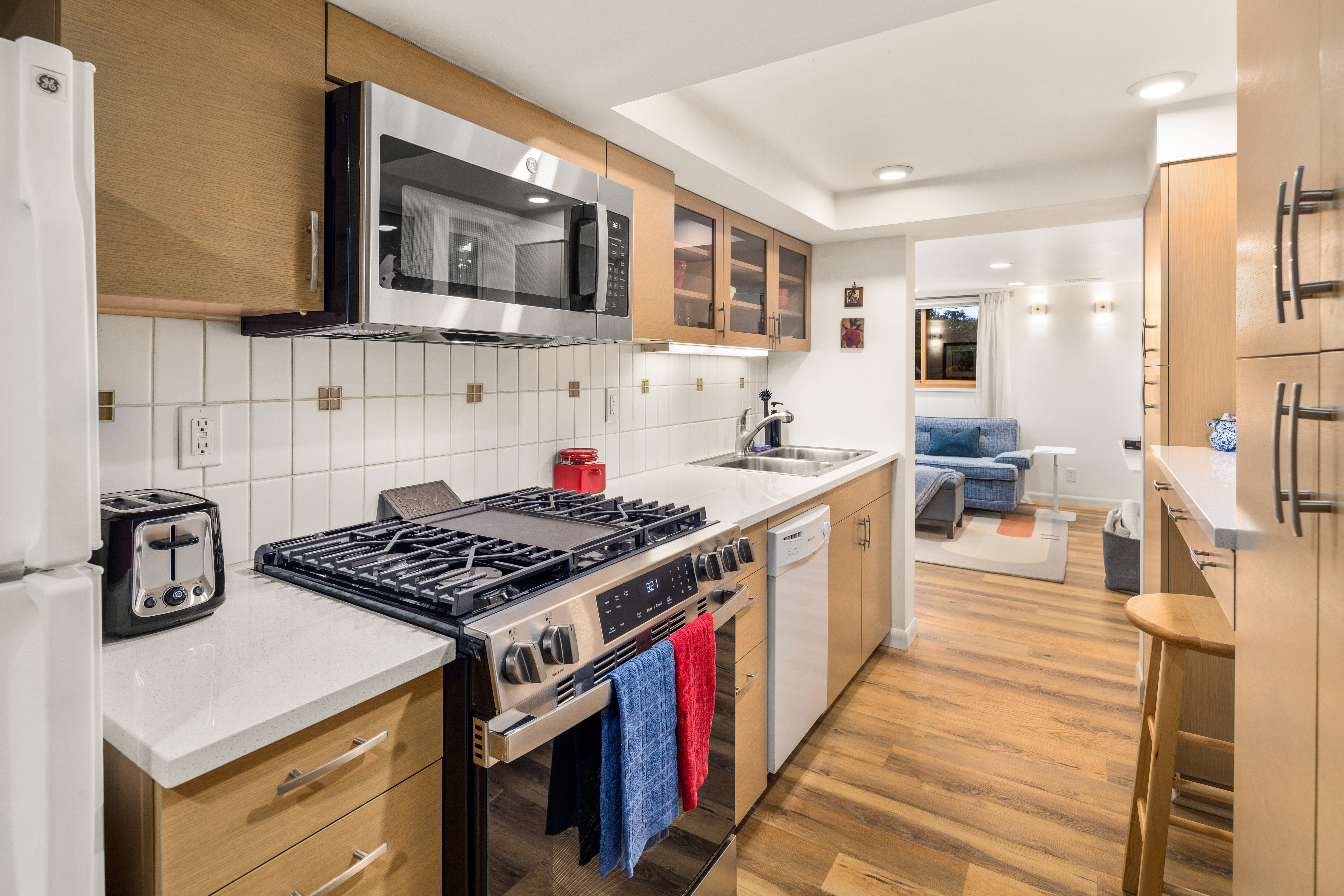 Step into serenity at this garden getaway near Carkeek Park in North Seattle! This bright, stylish 1-bed apartment features a king bed, sofa bed, gas fireplace, full bath, smart TV, WiFi, full kitchen, laundry, and parking.