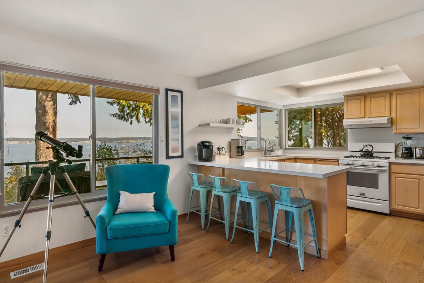 Each home has spectacular views of mountains and water, is walkable to beaches, and features an open living and dining area, a fully stocked kitchen, gas BBQs, decks, king beds, stocked coffee bar, full laundry and are pet friendly.