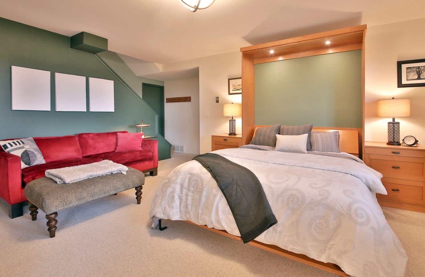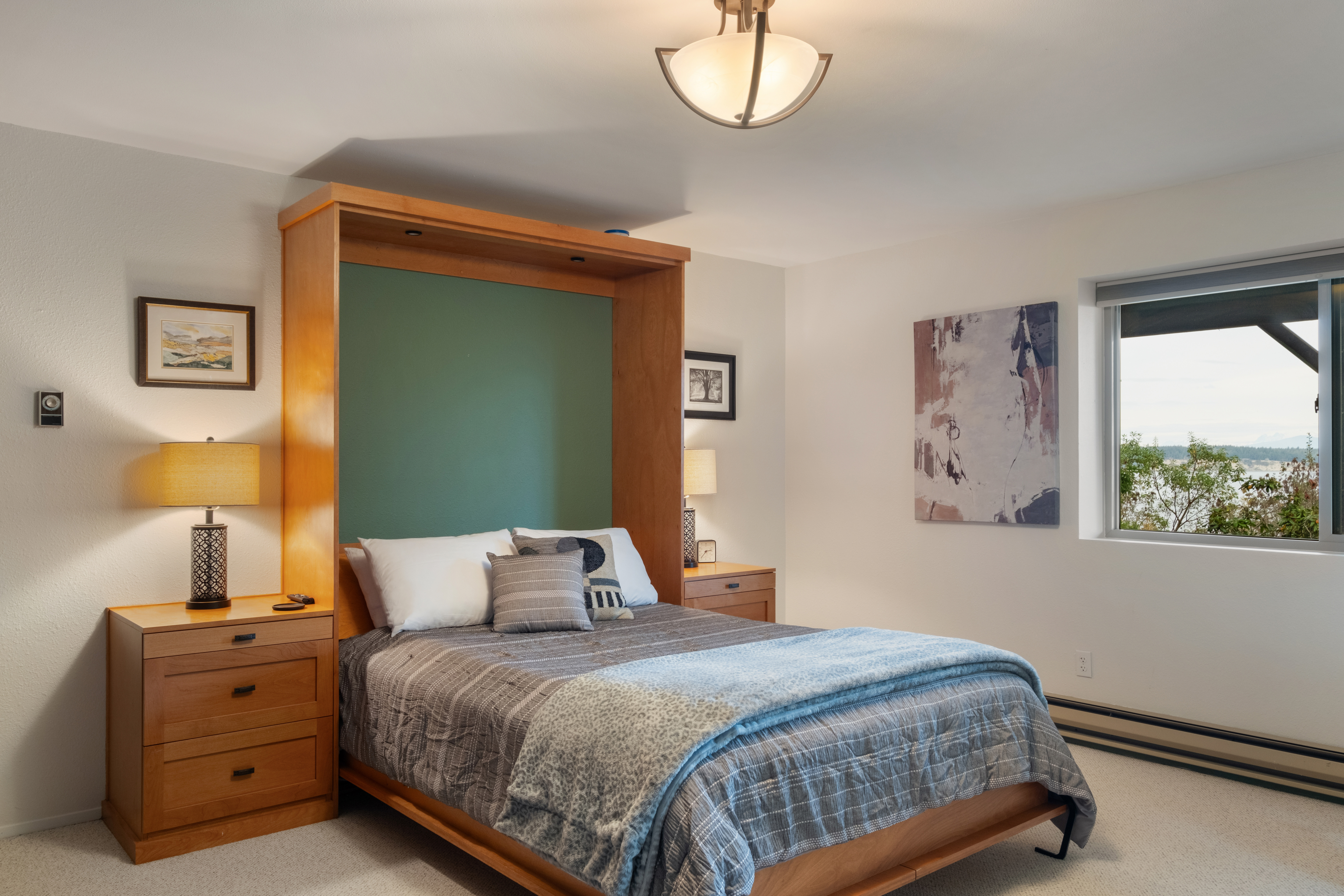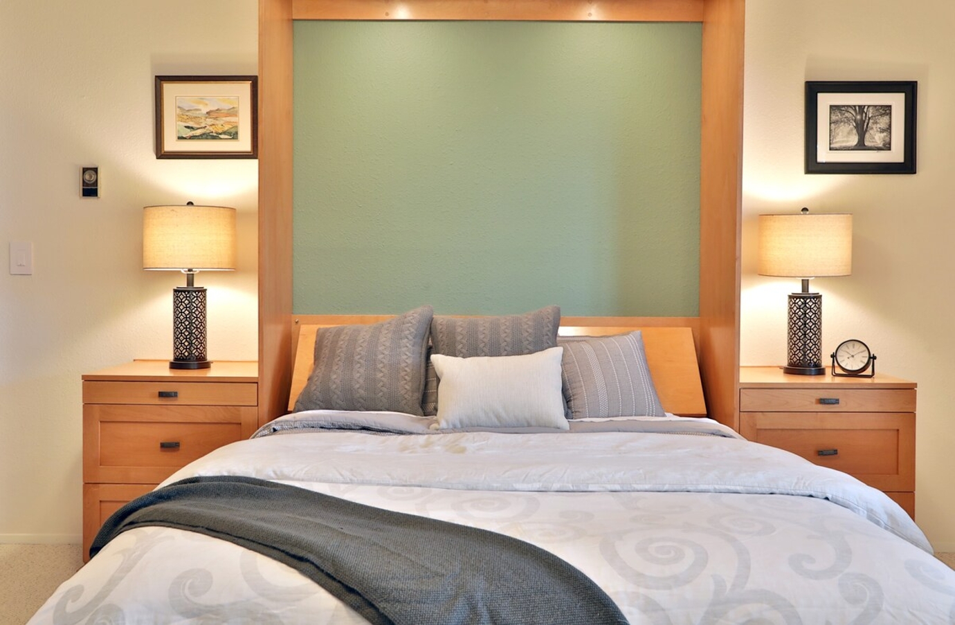 - Thoughtful Lighting: Two bedside tables with reading lamps.