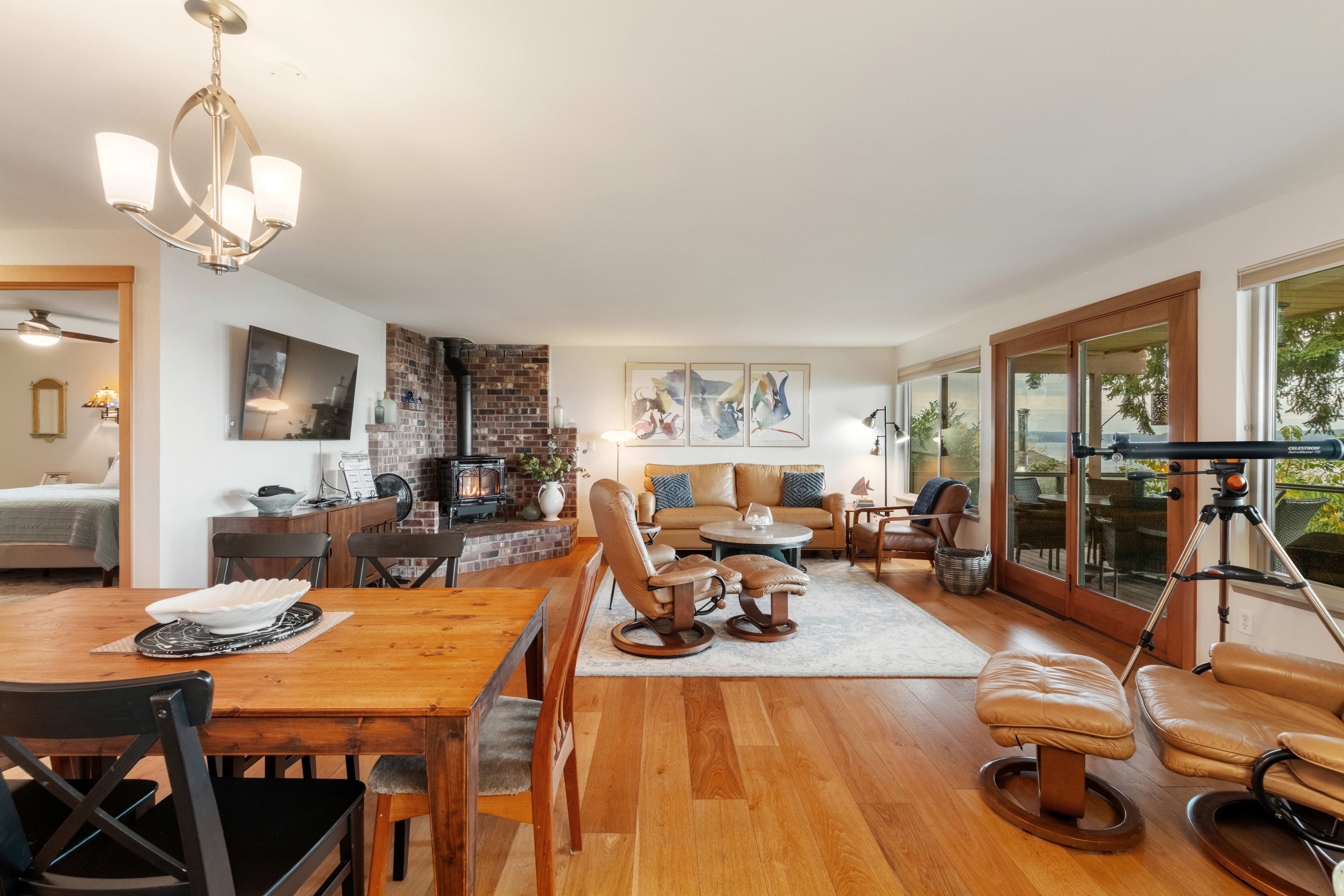 - Covered & Heated Deck: Outdoor seating for six, providing a cozy dining experience year-round.
